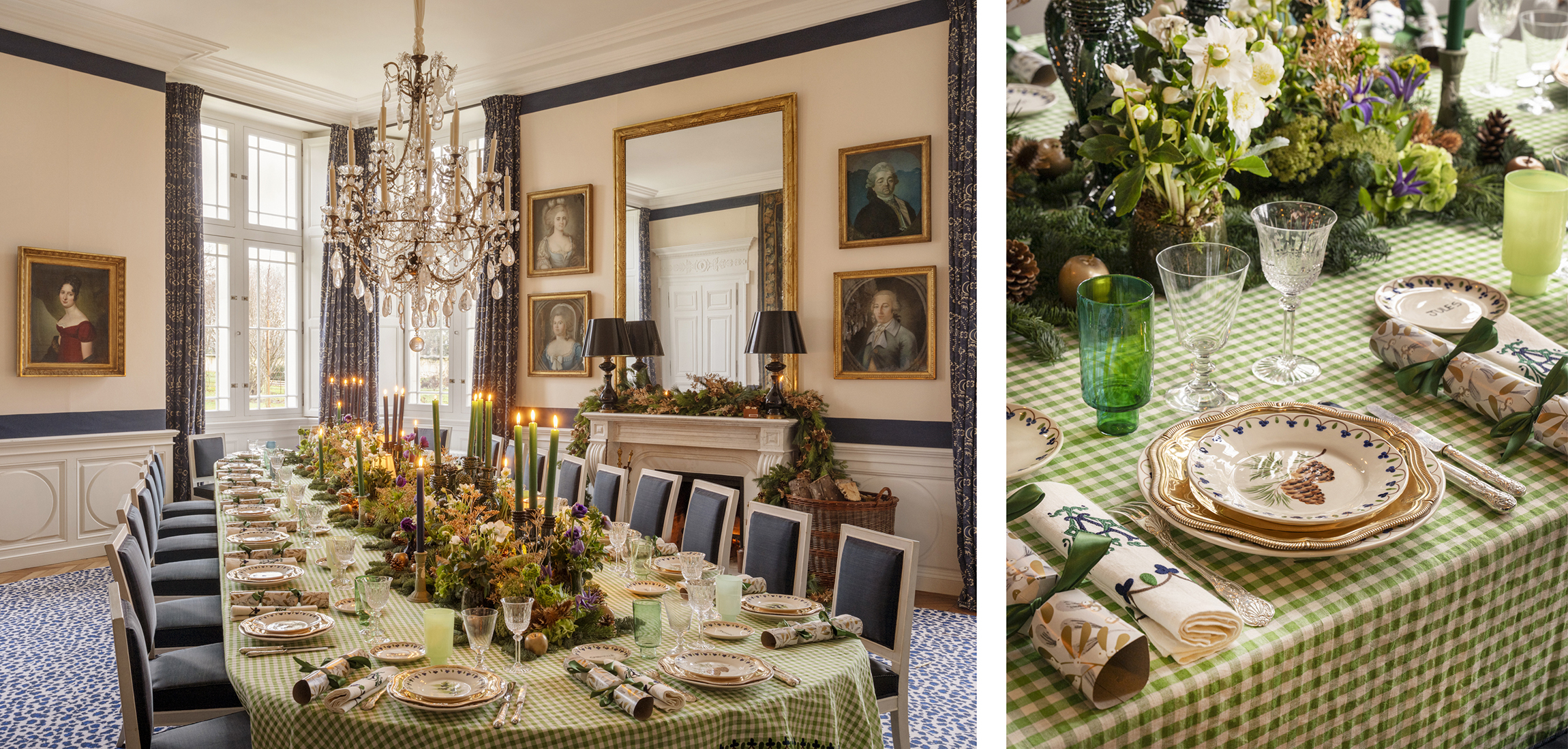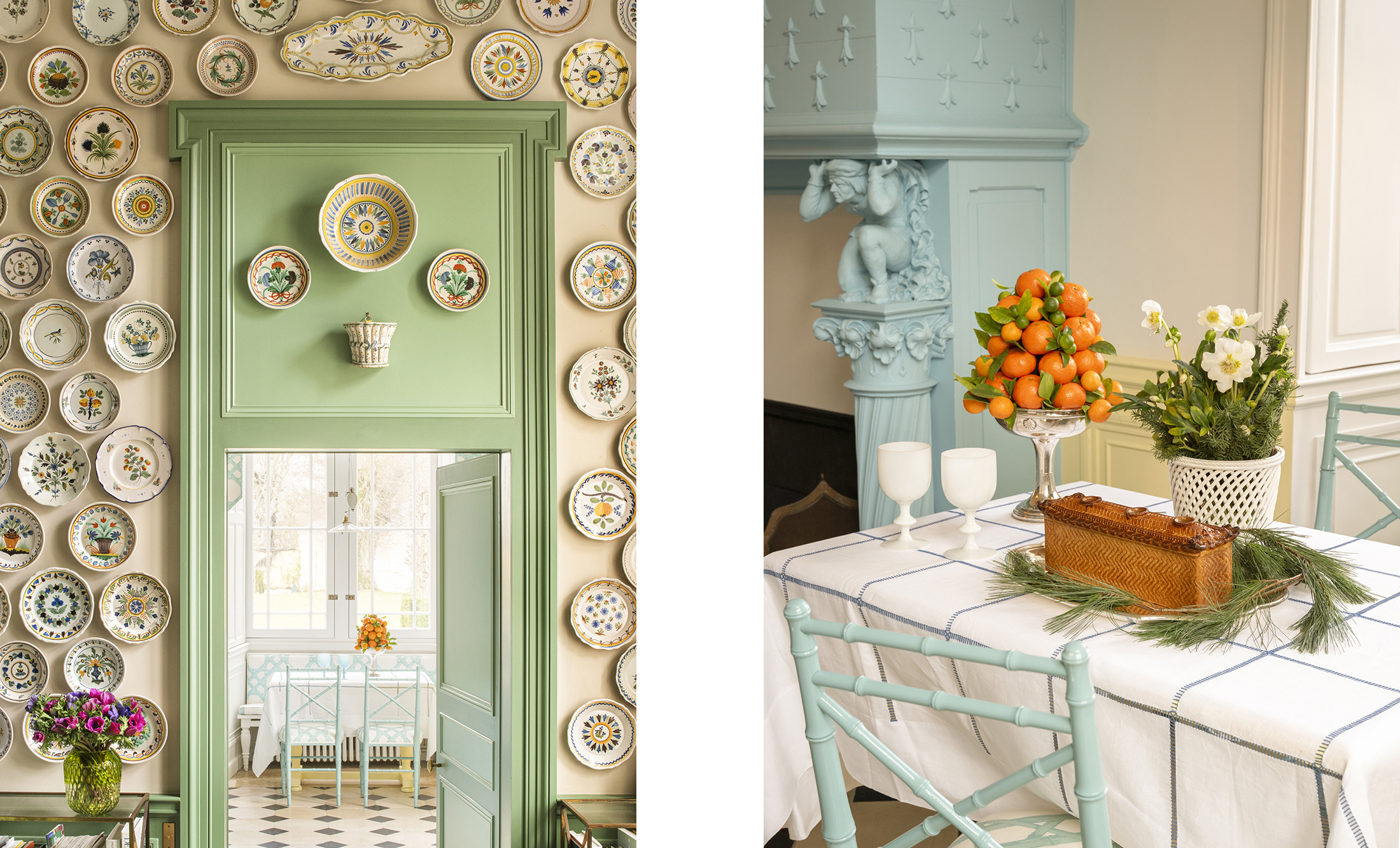 A kaleidoscope of color turns Christmas eve dinner into a riotous affair at this Normandy Château.
