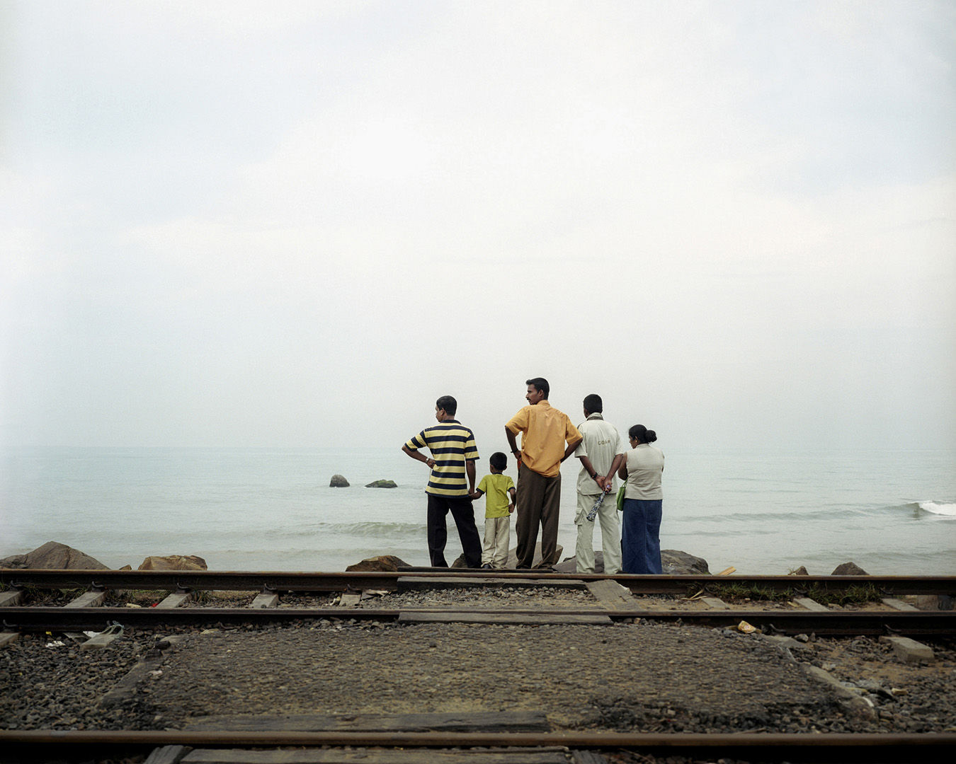Family facing the sea a couple of days after the tsunami hit the coast of Sri Lanka